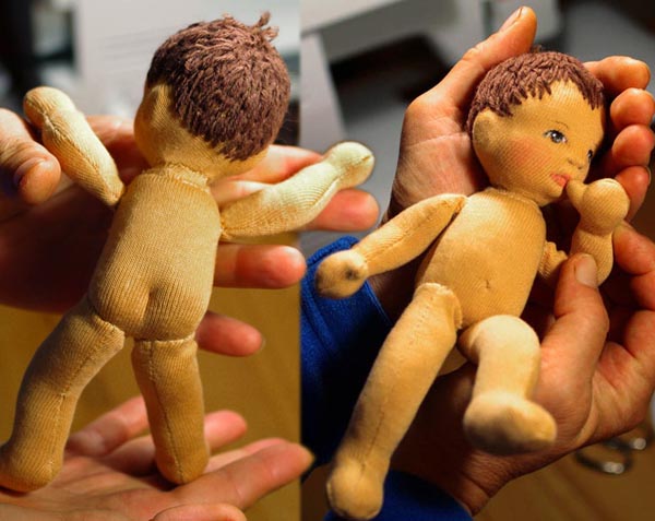 ein 19cm winziges Puppenbaby, mit Sandfüllung und drehbarem Köpfchen.